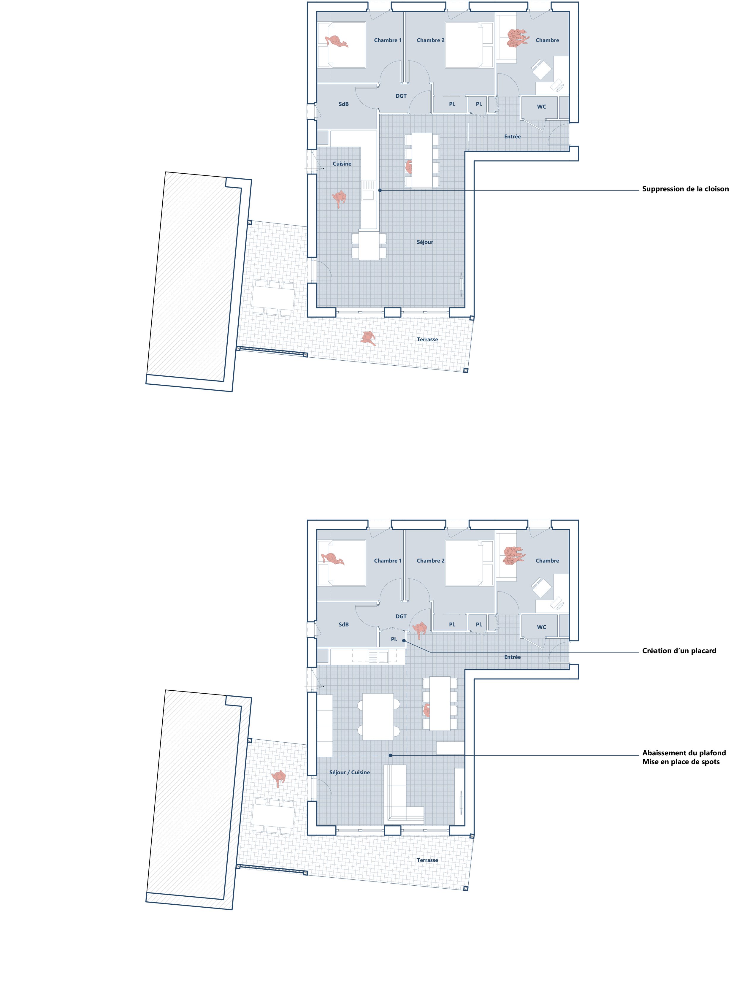 Une intervention mesurée, centrée sur les volumes et les circulations.